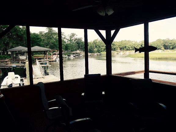 Immaculate well maintained home on the Juilenton River in Priester. Screened dock house, covered boat lift, floating dock, cleaning station. 8 feet mean tide. Leisurely short walk to your dock and dock house for some of the best fishing shrimping and crabbing on the Georgia Coast. Beaching on the pristine barrier islands is a pleasant boat ride away. Bulkhead in good condition. The entire dock, walk way and home have recently be pressure washed and stained. The grounds are well maintained with moss draped live oaks. Large open great room with kitchen. Screened back poach over looking the Julienton River. 20' x 25' out building for storage, golf carts, mower or a possible work shop. Down Town Shellman Bluff is a short golf cart ride to great sea food and a marina. (see office notes)