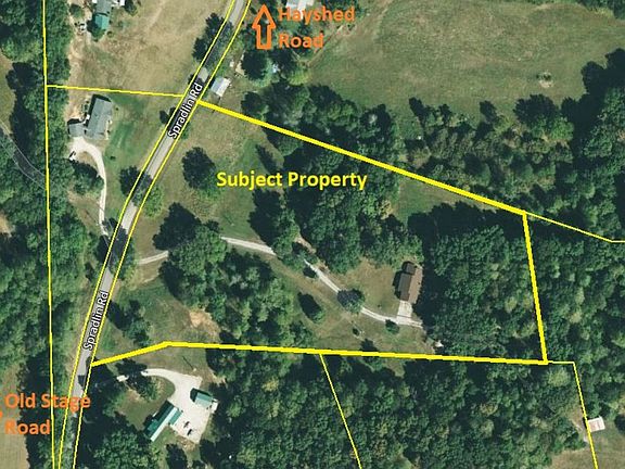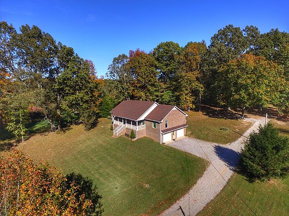 Brick home privately situated on 8 parklike acres... on a hill. Full unfinished basement, small storage building/equipment shed, city water, large covered front porch, covered back porch, two-car garage. Natural gas is as close as the neighboring property.