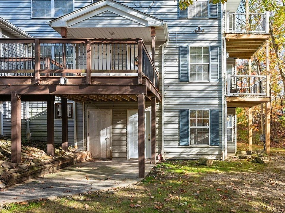 Move-in ready ranch-style condo surrounded by scenic wooded views. Enjoy the ease of one-floor, low-maintenance living in the parklike Stoney Run community, featuring a clubhouse with a party room and billiards area, fitness room with shower and locker facilities, and an outdoor patio with grilling area. The freshly painted first floor unit offers a spacious living and dining room combination with sliders leading to a covered patio with an in-ground grill that is grandfathered in. The kitchen features quartz countertops and all appliances included. The large bedroom offers a walk-in closet and an ensuite bath. In unit stackable washer and dryer for added convenience. Recent updates include: Refrigerator (2025), flooring in living room, hall and bedroom (2023). INCLUDED are ALL kitchen appliances, washer/dryer, window treatments, and a 1-year home warranty. The low monthly HOA fee includes 1 garage parking spot, water, sewer, trash, landscaping and snow removal. Conveniently located near I-77, I-80, OH-82, shopping, restaurants, schools, and other local attractions.