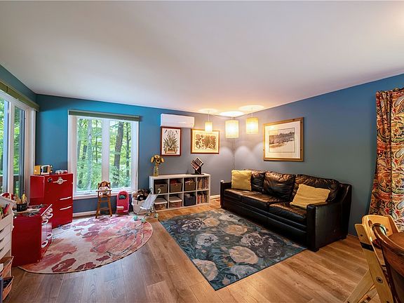 Don't miss this exceptionally cared for 3 bedroom, 2 full bathroom home, nestled in a peaceful wooded setting with backyard access to the BLACK DIAMOND TRAIL (an 8-mile recreation trail from the Ithaca Children’s Garden to Taughannock Falls State Park) AND lake views!!!This is a multi-level ranch home on 2.44 acres just minutes from downtown Ithaca, about 10 minutes to Trumansburg, and about 7 minutes to Taughannock Falls State Park! Along with the trail, enjoy the expansive deck with amazing views, beautiful magnolia and lilac trees, the covered porch, lovely back yard, and your own stream with a bridge to access the rest of your wooded acreage. There are also seasonal lake views from the living room and deck and porch. The views out of the living rooms and bedrooms of this house truly give it a feeling of being in the treetops. Many new updates including new flooring, beautiful interior painting, remodeled kitchen and bathroom, waterproof paint and surface sealant on the deck, new gutters with updated drainage, lighting, and new air-sourced heat pumps (which function as heat, air conditioners and dehumidifiers) as well as an updated electrical panel. This home also offers a wood stove to stay extra cozy in the winter, a two car garage, large mudroom and laundry room area perfect for extra storage.