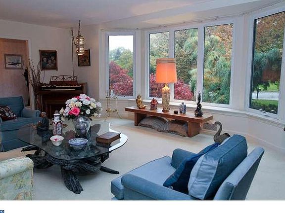 This brick expanded ranch home offers gracious living on a beautiful street in one of the most desirable neighborhoods in Penn Valley. A flagstone walkway leads to the covered front door area, welcoming visitors as they enter this distinctive home. The Entrance Hall features accent side lights around the front door, tile floors and a coat closet. The spacious Living Room with a five window bay area is flooded with natural light and provides an elegant setting for entertaining. The formal Dining Room adjoins the Living Room and boasts a bay window. The Kitchen is equipped with wood cabinetry, ample counter top space, a dishwasher, an electric cook top, wall oven, and a pantry closet. Adjacent to the Kitchen is a bright Breakfast Room which has an exit to the rear yard and an inside entrance to the attached two car Garage. The Entrance Hall also opens to the comfortable Family Room which features wood parquet floors, a gas stone fireplace with slate hearth, and built in wet bar with refrigerator. Sliders access a covered patio, in ground pool and fenced rear yard. Enjoy your morning coffee sitting on this private patio overlooking the thoughtfully landscaped yard and stunning in ground pool. Situated to the right of the main living area is a hallway leading to three bedrooms and the staircase to the second floor. The spacious Master Bedroom Suite includes a walk in closet, a ceiling fan, and a ceramic tile Master Bathroom with shower stall. Bedroom 2 has a ceiling fan and good closet space. Bedroom 3 is currently used as an office. The full ceramic tile Hall Bathroom has a bathtub with overhead shower and completes this expansive level. Located off the second floor hallway are a walk in cedar closet and a large floored unfinished Attic Room that provides extensive storage possibilities and could be converted into additional living space. Bedrooms 4 and 5 are each extremely generous in size and feature wall to wall carpeting. Serving these bedrooms is a ceramic tile Hall Bathroom with bathtub. The Lower Level includes a large Recreation Room that has a walk out exit to the side yard, a Powder Room, a Laundry Room, and a Storage/Utility Room. This distinctive five bedroom, three full and one half bath home has been impeccably maintained by its current owner. This home is conveniently located within walking distance to schools and within minutes of major highways, shopping, Narberth with its R-5 train, restaurants, library, and parks.