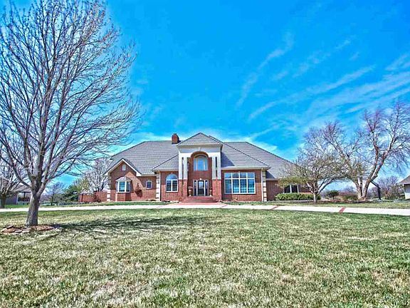 Magnificent 7 bedroom, 5 bath, 2 half-bath home on 1.4 acre lot in McPherson! Take a look outside onto an oversized golf course lot with an amazing sunset view. Step inside to see a spacious entryway with a winding staircase. Features gorgeous leaded glass and quality upgrades. Top-of-the-line kitchen with professional cooking appliances. This home is perfect for entertaining with plenty of room for guest parking in circular driveway. Attractive trim and wood throughout home create a visually-pleasing aesthetic. Concrete roof and safe room in basement ensure security. Enjoy the upcoming summer in your new pool. Approx. 10,000 sqft of living space. Call today to schedule your private showing!