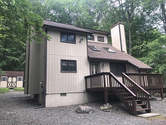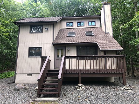 Multiply Offers! Highest and Best by Friday 9 am! Move in Ready, Well Upgraded Pocono Home with 3 Bedroom 2 full, Cathedral ceilings and Skylights which brings plenty of Sun Light . Home is offering living room with fireplace, cathedral ceilings, dining area, kitchen with breakfast bar and beautiful laundry room . Open Floor plan with lots of windows make this house very light and bright. There is more.... a flat lot with private back yard which backs to Green Belt. Community Clubhouse, outdoor pool, tennis/basketball ct., playground, garbage drop off, roaming security and gates. Close to Pocono Amenities like hiking, canoeing, rafting, horseback riding, golf, skiing and swimming. Price to Sell. Call for an appointment today!