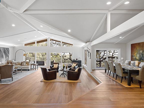 Incredible opportunity to put your own personal touches on an already beautiful home in one of Lafayette’s most sought after neighborhoods. Your new home features 5 bedrooms, 5 bathrooms at 4,888 SF +/- with 4 out of 5 bedrooms providing ensuite bathrooms. Fall in love over and over again as you enter the property and take in the awe inspiring views of Mt. Diablo, the nearby landscape, and the valley looking out towards Mt. Diablo. The upstairs of the property is highlighted by a gorgeous light and bright open concept with recessed lighting, exposed beams, gorgeous engineered hardwood floors, and near floor to ceiling views in seemingly every room. The downstairs of your new home features the primary suite, two secondary bedrooms with en suite bathrooms, and an au pair/in-law set up featuring a bedroom, bathroom, separate kitchen, separate laundry room, and separate entrance. Last, your new home is conveniently located near Downtown Lafayette, Lafayette BART, the Lafayette Reservoir, and provides ease of access to Hwy 24. Do not miss this beauty!