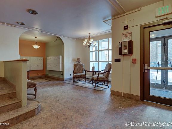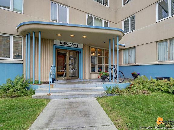 The Mid-Century Modern Knik Arms in Downtown Anchorage offers Urban Living at it's best! Secure building with elevator access and the dues include electricity & heat. Just steps to the amenities of City Life. Beautifully updated kitchen & bath, spacious living room, great light and mountain and Inlet views. Dedicated parking spot & big storage space and very nice laundry facility, See 'More'