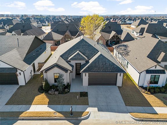 Welcome to Hyde Park at Tulsa Hills. This brand new home boasts 3 bedrooms, 3 bathrooms, a cozy flex space, spacious kitchen with a stunning vaulted ceiling and walk-in pantry. Designer finishes throughout while being mindful of aging in place and the location, location, location…it doesn’t get better than shopping at Tulsa Hills! Great access to various amenities, doctors, ER, incredible restaurants, and vibrant community atmosphere thanks to the high-end clubhouse and its diverse offerings: pool, indoor and outdoor pickleball courts, library, tennis court, putting green, game room, gym, card room, outdoor kitchen. This new construction home makes for a comfortable and extravagant living experience. All single stories, yard maintenance included.