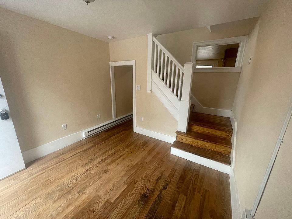 Available October 1st. This is a 1.5 Bedroom apartment. Apartment consist of 2 floors. First floor living room, kitchen and a backyard. Second floor has front bedroom, bathroom and additional small room. Can be use as storage/den. Apartment has hardwood floors throughtout in living room and bedrooms. Entire unit has been freshly painted. Call prior to coming for a showing. Heating is electric baseboard. Owner pays trash, cold water and sewer. Tenant pays electric. Tenant takes own trash to curb. Application can be filled out at the time of viewing. Qualifications: 1. 3 recent pay stubs 2. 2024 tax return or W2 3. Landlord Application 4. Driver license 1 year lease. tenant pays Electric. landlord pays trash and cold water. 1 year lease required. tenant pays electric. Tenant takes own trash to curb. Landlord pays cold water and sewer.