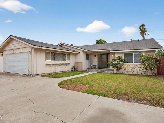 Welcome to this beautiful single-level 4-bedroom home in North Oxnard!From the moment you arrive, you'll appreciate the circular driveway and the spacious 2,292 SqFt floorplan. Step inside and be impressed by the open layout that offers a formal living room with fireplace, dining area, and an oversized family room toward the back of the home with beams & fans, giving you the ultimate space for gatherings and offering natural lighting.The kitchen is generously sized with plenty of cabinet space, stainless steel appliances, granite countertops and backslash, and with direct access to the garage. The private primary suite is thoughtfully set apart, offering a spacious walk-in closet and a beautifully remodeled ensuite bathroom featuring a sleek shower stall with bench seating, dual sinks, and ample cabinet space. On the opposite side of the home, you'll find three additional bedrooms- all with fans in the bedrooms, and a full hallway bath. Enjoy this large backyard, perfect for entertaining, barbecues, kids at play, or simply relaxing year-round. Additional highlights include central A/C, a newer furnace, newer electrical panel, a roof that's only about a year old, and solar panels for energy efficiency which feature 2 storage batteries.Homes of this size with these features rarely come to market at this price point, come make it your home! See it today!