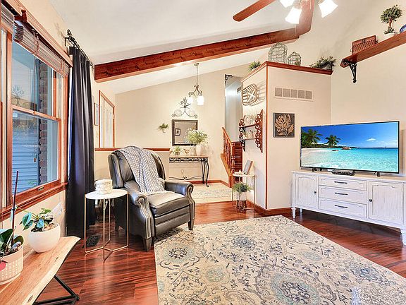 Welcome to this charming 3 bedroom, 2 full bath, 2500+SF quad level home ideally located next to Beiriger school. Home offers a perfect blend of comfort and functionality. As you enter from the covered front porch you will immediately see the care that has been given to his home. The living room features beautiful hardwood floors and beamed ceiling. There is also hardwood flooring on the stairways and in the upper hall adding warmth and character throughout. Kitchen is spacious and offers a breakfast bar, pantry and ample space for dining. All appliances stay. Just off the kitchen a sliding glass door opens to a freshly stained 14.5' x 22.5' deck complete with a 11' x 13' pergola where you can relax or entertain. Fully fenced back yard includes an 8'x12' shed providing additional storage space for all your outdoor essentials. The primary bedroom features an en-suite bath that can be accessed from both the bedroom and hallway. All 3 bedrooms are carpeted and equipped with ceiling fans. Lower level is perfect for family gatherings with a good sized family room, 2nd full bath and finished laundry room. You'll appreciate the easy access to the 24' x 26' garage from this level. The basement, currently used as a workout/storage area, offers additional flexible space to suit your needs. Don't miss the attached list of updates showcasing the many improvements to this meticulously maintained home. Seller is also offering a home warranty for your peace of mind. With its ideal location next to the school and a wealth of functional living spaces, this stunning home is truly a must-see! Schedule your showing today and experience everything this incredible home has to offer. Note: These items do not stay: ring doorbell, gas grill, shelving and curtain rods on front window in living room.