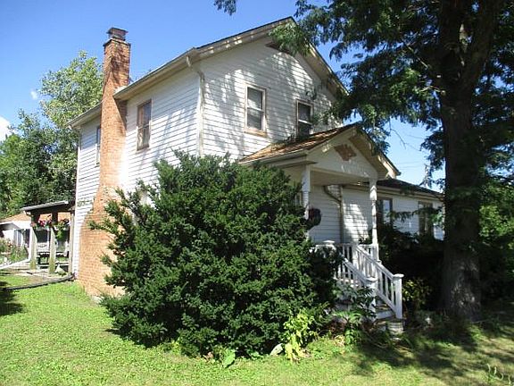 3 BDR. 1-1/2 Bath TWO STORY FARMHOUSE on a LARGE CORNER FENCED LOT features a LARGE COUNTRY KITCHEN w/wood-burning Stove, CLOSET PANTRY and adjacent CATHEDRAL CEILING SUN ROOM. It has an UPDATED FULL BATH w/CERAMIC TILE SOAKING TUB & SEPARATE SHOWER, FORMAL DINING ROOM, MAIN LEVEL MASTER w/Mbath and a SPACIOUS LIVING ROOM w/FIREPLACE. There is a SHADED COVERED PORCH PATIO & tiered DECK. IT also a MUD ROOM, OVER SIZED 2 Car Garage w/3 Season Room and an additional one car garage & two storage sheds. Property being sold AS/IS Cash or Conventional Only!