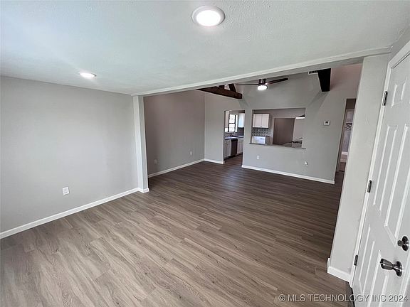 Beautifully fully remodeled 3 bedroom 2 bathroom home that won't last long! The living room has vaulted ceilings finished with dark cedar beams and waterproof luxury vinyl flooring throughout. The kitchen has been opened up to the living area and boasts beautiful granite countertops, new appliances, and all new cabinets. Through the kitchen is the separate laundry area and brings you into your new primary master suite. The oversized primary master bedroom has his and her closets, a vanity or work space area finished with granite, and a back door into the spacious backyard. The primary bathroom has an open walk in shower including a rain shower head and handheld spray system, beautiful tile, his and her vanity sinks, and plenty of storage. The guest bedrooms have deep closets and new remote controlled fan fixtures, a guest bathroom with new vanity and beautifully tiled bathtub/shower area. Updates include new energy efficient vinyl windows, waterproof vinyl flooring, tankless hot water heater, brand new 4 ton central heat and air unit with all new duct work in the attic, the primary bedroom add on with primary bathroom, fixtures, kitchen cabinets, granite countertops, tile work in the kitchen and both bathrooms, all new electrical and plumbing throughout, interior/exterior higher grade paint, and privacy fence. Seller estimates roughly 1470 square feet with added on primary bedroom and bathroom. Call to schedule your showing today!