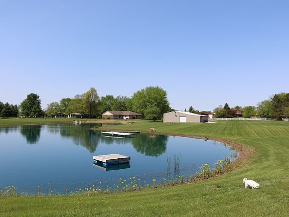 This beautiful 5 acre property gives you country living in town! It offers an open concept home, a large pond, a pole barn with game room and quality upgrades throughout! The kitchen offers granite countertops, modern backsplash, under counter lighting, and stainless steel appliances. The guest bathroom has a double vanity, Travertine countertops and a Jacuzzi tub. The master bedroom offers lots of closet space with a totally updated master bath offering a new double vanity, granite countertop, and beautiful marble tile throughout! This home has beautiful woodwork and doors. Newer roof, duct work, heated garage and the list of improvements goes on.