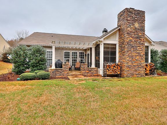 The Del Webb Bluffton Cottage with the unique cozy covered front porch, 2 or 3 bedroom (3rd BR currently being used as an office), 2 Full Baths, formal Dining Area, additional eating area in Kitchen and a big beautiful Sunroom with vaulted bead board ceilings, Sky high Stone Fireplace, porcelain tile flooring surrounded by windows that open to a very private lot that backs up to heavily wooded area, close to the lake. The main living area has 5 inch plank LVP, Livingroom boasts stone fireplace with Gas logs and Custom Built in cabinets/shelving. All Stainless Steel Kitchen Appliances, Granite Countertops, Breakfast bar, 6 ceiling fans included, Buried propane tank for gas Cooking & fireplace. Garage has extended 4 ft and stairs to the attic storage.