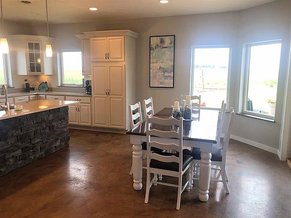 Country living home sitting on 3 acres just minutes from Minot! This newer, custom-built brick home is all on one level for easy living! It features high-end finishes like stained concrete flooring with in-floor heat throughout the home and garage, 9-foot ceilings, vaulted living room, quartz tops, walk-in closets in all bedrooms, tile shower, beautiful stonework on the kitchen island, Stainless appliances, paver patios to enjoy the country life views on both sides of the home, plus a see-through fireplace in the living room and back patio for those chilly nights! The home has three bedrooms plus a huge bonus room, and 2.5 baths. Enjoy country life in your new home, call to see today!