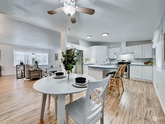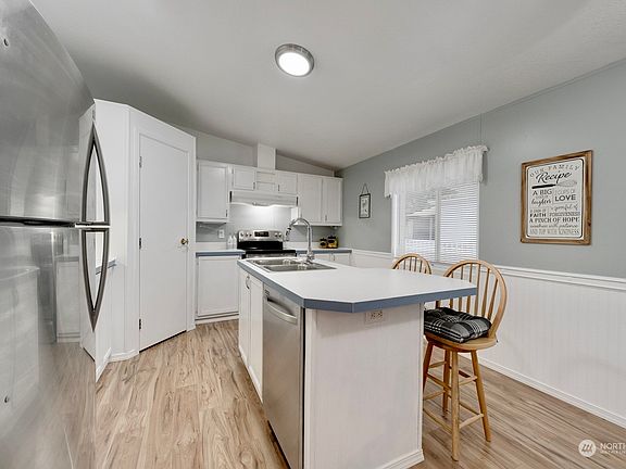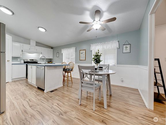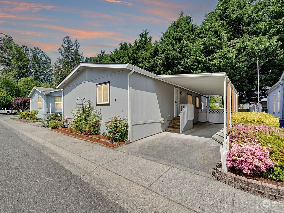 NEW PRICING! Beautiful & bright 3-bed/2-bath home with MANY upgrades in a quiet 55+community. NEW Laminate plank floors, NEW carpet, NEW interior paint, NEW LED lighting, NEWer Exterior Paint (Spring 2022) & NEWer roof. Good-sized kitchen w/vaulted ceilings, newer appliances, pantry, plenty of cabinets/counter space, breakfast bar+room for a dining table opening up to the large light filled Living room. Spacious primary suite w/ WIC & ensuite bath. 2 more bedrooms & a 2nd full bathroom. Convenient Utility/mud room. Covered patio area & yard space waiting your vision to make it your own. Carport is deep enough to have 2 cars tandem. Great central location close to parks, shopping, dining, hospitals & I-5. OWN your home at a reasonable price!