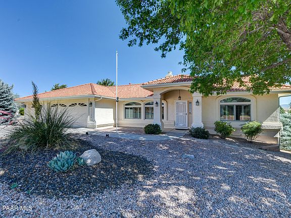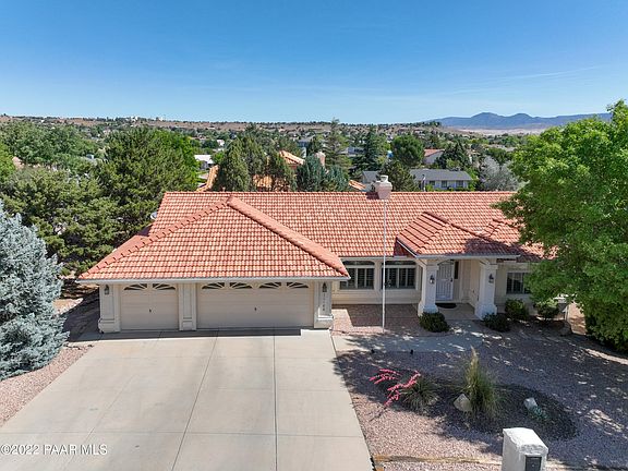 Fantastic well maintained home nestled in a quiet neighborhood of Prescott Country Club! This 4bd 3ba, 3 car garage is an ideal 2609sf of comfort and has much to offer. Awesome Views of Mingus Mt from this .26 acre corner lot. Home features warrantied plantation shutters, wood & tile floors, granite counters, gas fireplace for your enjoyment. Plus Andersen windows, 2 storm doors to upper deck, and an electric sunshade on the deck. Security system if you need. Desirable Circulating pump for efficiency. A nice touch of Crown Moulding in Kitchen and master. Your pet will love the fenced turfed area in the backyard. The very low priced HOA does offer many amenities, golf, fitness, pool, clubhouse, restaurant. This home is move in ready!