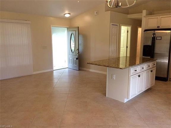 Single family home 3 bedrooms, 2 bathrooms and 2 car side loaded garage located in 3.38 acre of land. Completely remodeled with new cabinets and granite counter tops in kitchen and bathroom. Washer and Dryer are in for tenants convenience. Tile in main areas and carpet in bedrooms, screened lanai and fenced lot.
