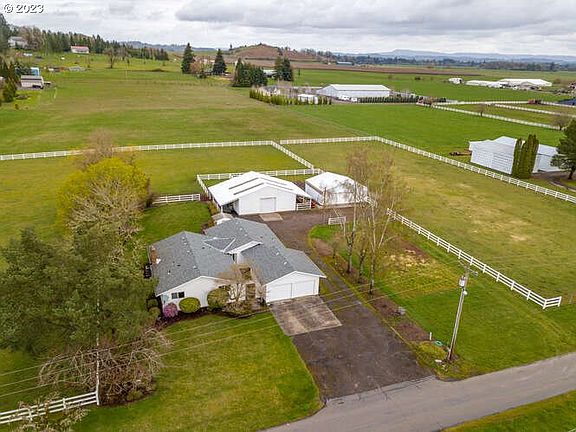 Amazing opportunity to live on the coveted Brentano Lane! One level ranch with 4 bedrooms, 2 baths, office, utility, primary suite on one wing and 3 additional bedrooms on opposite wing. Barn, shop and white rail fencing ready and waiting for your animals. Beautiful views of the mountains and the valley. McMinnville Water & Light and Septic, well for irrigation. Ready for you to bring it back to life and make it your own!