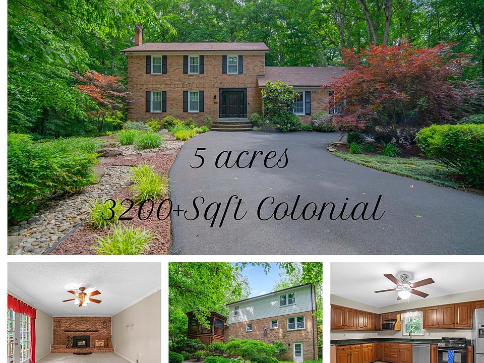 A RARE FIND IN CLINTON! Gorgeous 4bed/3.5bath Colonial situated on FIVE beautiful wooded PRIVATE acres in the highly sought-after New England Estates. Enter the welcoming foyer with curved staircase and see that the main level offers a spacious living room, dining room, family room with Vermont Castings wood stove, french doors that lead onto the deck and step up to kitchen. The kitchen is equipped with walnut cabinets, granite countertops, stainless steel appliances, a large pantry and separate laundry room. Ascend the curved staircase to the upper level which features a primary bedroom with ensuite bath and walk in closet. A second bedroom with ensuite bath/hall bathroom and third bedroom. A fully finished basement awaits on the lower level offering an additonal 1000sqft of living space with a large recreation room, studio room, a fourth bedroom, full bathroom and storage/utility room with walkout to backyard. The deck off of the family room serves as a wonderful place to take in the serenity of the wooded lot, your morning coffee in the newly roofed gazebo, or dine al fresco as you listen to the water feature. Numerous recent updates include: all new Thomson Creek windows 2020, new two-car garage door 2021, newly sealed circular driveway 2022, basement renovated with new carpet and paint 2020. Walk the property and take in the lush, vibrant landscape surrounding this beautiful home. The lot backs to Cosca park and offers a stream at the back of the lot. Live in a hard to find serene setting in Clinton with close proximity to all commuter routes! Only 17min from the Woodrow Wilson Bridge! Close to parks, farm stands and major shopping. Make 11100 New England Drive your home today!