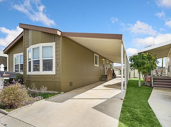 Welcome home to this amazing manufactured home in Stardust Mobile Home Park. Check out this meticulously maintained and upgraded family park home with 3 bedrooms and 2 full baths. Owner has taken great pride of ownership in this home and it shows. The home has been recently updated and features waterproof wood-like laminate flooring, fresh paint, Air Conditioning, water softener and ceiling fans. Open concept floorplan with high ceilings and skylights to bring in natural light. As you tour the outside of the home you will notice plenty of parking with a carport, storage shed and a fantastic garden areas currently planted with drought tolerant native landscape. Coastal living at is best only few short miles to the beach and historic downtown Ventura.