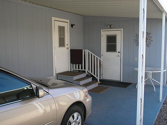 Mobile Home (14' x56') in large, well kept Senior Park. Home in excellent condition, well cared for. Many new updates. New furnace and central air with warranty transfer to new owners. New light fixtures in kitchen, New toilet 2007. 11'5"x12' shop. New refrigerator, 2007. Non-smokers and no pets in house. Appliances stay. Bathroom and kitchen curtains stay. New ceiling fan in living room. Motion light in carport. Covered carport (24'x7'7") Attached Storage shed ( 7'7"x8') Avg. cost for rent,sewer,trash and water $428.00 a month. Rent alone is $382.00. No pets allowed in the park. Park Security provided. Neighborhood Description Quiet and close to shopping. On the map, the arrow doesn't want to stay where it is put. The house is on the west edge of the park and right where the street T's off. It is next to the one with the dark roof.