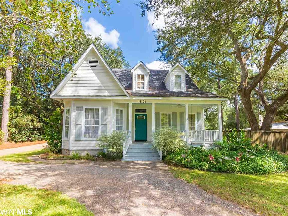 Charming 3 bedroom, 2.5 bath home on half an acre in Fairhope. Great location with a community boat launch & access to highly sought after Fairhope schools. Home features a newly renovated kitchen and master bathroom- complete with tiled backsplash, large stainless undermount farmhouse sink, stainless appliances, & gas range in the kitchen; and tiled shower, new wood-look tile flooring, updated vanity, lighting, & cabinets with double bowl sinks and updated two panel doors in master bath. Original hardwood throughout most of the house- including the kitchen, living room, master bedroom, dining room, & study. Second and third bedrooms are carpeted. Crown molding & ceiling fans throughout. Living room, just off of the breakfast area in the kitchen, features a woodburning heater. Small study with built-ins is conveniently located to both the living room and kitchen. Separate dining room off of the other end of the kitchen. Large walk-in closet in master bedroom. Cabinets and plenty of storage space in the utility room. Large sunroom opens up to covered wood deck with hot tub overlooking the back yard. Large insulated workshop and separate storage building. Privacy fenced yard. Just $25 per year gets you access to the community boat ramp and Fish River.