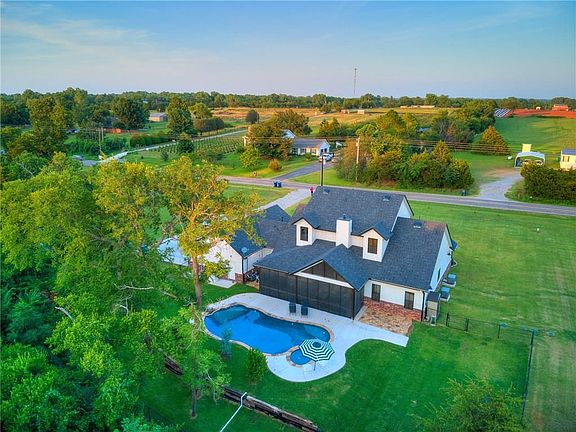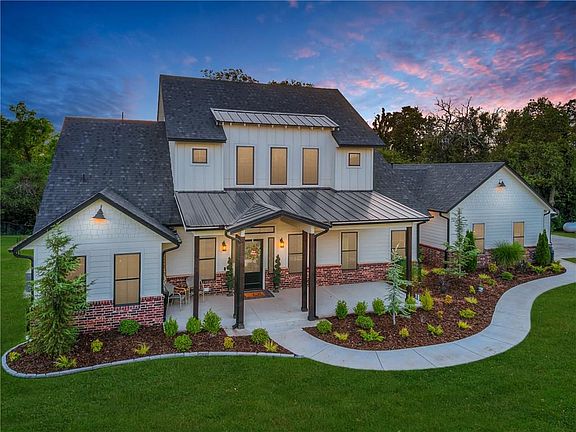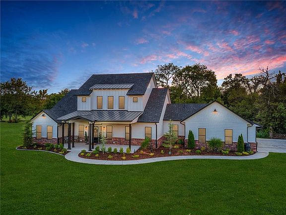 This Mustang Modern farmhouse combines the sleek clean lines of contemporary design with the cozy farmhouse aesthetic to create a uniquely fresh take on the country living inspired style. Crafted to perfection & designed for modern living, no expense was spared creating this unique home. The epitome of craftsmanship, using only the finest quality materials the fastidious attention to detail & inspired design is evident in every inch of the space. Enjoy a wide, open floor plan with a fireside family room open to the dining area and breathtaking gourmet kitchen. Magazine-worthy, the kitchen features large island, custom cabinets with stainless steel appliances. Beautiful outdoor living spaces with views of pool, landscaping and mature trees. Other amenities: GeoThermal, Storm shelter, reclaimed wood, etc. This home offers what today's buyer is seeking with a great location to access highways. Only 20 minutes to Downtown Oklahoma City. Could be 5 Bedroom or 4 Bedroom with office.