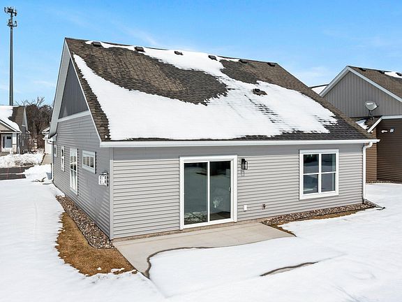 Hard to find 3-CAR INSULATED GARAGE, 1437 SF, 2 bedrooms, 2 baths and 10x16 south facing concrete patio to enjoy the outdoors. Kitchen has full overlay Birch cabinetry with soft close drawers and doors, quartz countertops, center island with deep pan drawers, recycle center and a built-in pantry. Open concept floor plan with beautiful Natural Ledgestone gas fireplace, vaulted ceilings, ceiling fans, luxury vinyl plank flooring, laminate closet organizers and much more! Large owner's suite has a private 3/4 bath and walk-in closet. Immediate occupancy. Start living a low maintenance lifestyle! Townhouse directly behind this house will have a privacy fence around the patio. PLEASE NOTE: LINE AVE WILL BE CONVERTED TO A CUL DE SAC IN SPRING OF 2025.