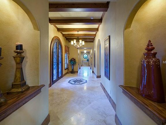 WELCOME TO PARADISE! From the moment you step into this masterfully crafted custom home you will feel as if you have traveled to a far away place. Magnificent custom doors and elegant fountains welcome you as you arrive. Once inside you may choose to steal away to the large master retreat where you can wash away the cares of the day in the large massage tub, release your daily stresses with a workout in the spacious gym or simply curl up with a book in the sitting room. When work beckons, you can make the short walk to the sophisticated dark wood study across the hall. This sprawling estate is equipped with the most high end electronics & amenities that will delight any home buyer such as a Kaleidescape movie system that offers the ability to access 1,000 movies from multiple locations in the home, simultaneously & the luxurious home theatre with state of the art projection & seating. Entertaining is a breeze in this home as it features a large open kitchen with butler's pantry inside & a spacious summer kitchen outside, complete with flat screen television, fireplace, grill, wet bar & screen enclosure. The custom resort style pool nestled into the rich mature landscaping, basketball court & putting green afford you endless recreation every day. Those who love their grown-up toys will find the over sized 6 car garage to be a dream with A/C, tile floors and pin lighting. Guests will enjoy accommodations in the large mother-in-law quarters complete with private courtyard. A MUST SEE HOME!!