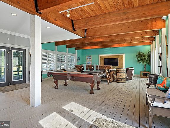 Unique multi-use building on 5 acres with pond and 2 garages is a must see for the buyer looking for a very special opportunity. The open concept 1st floor living space has been tastefully updated with a new, large, chef's kitchen with granite & concrete counter tops, brand new cabinets, stainless steel appliances, prep island and large pantry. It overlooks an extra large living room with exposed wood beams, crown moulding, and recessed lighting. A beautifully updated full bathroom on the first floor with tile flooring and walls, barn doors and glass shower surround will impress even the most discerning buyer. An updated and spacious laundry room with new cabinets and sink finishes off the first floor. The first floor has central heat and a/c. Upstairs, you'll find a finished 300 sq. ft. office with heat & a/c, multiple walk in storage areas and an unfinished, oversized (1,145 sq. ft.) game room. With A1 zoning, the property is currently being used as a high-end "man-cave" and is perfectly suited for entertaining. The upstairs bonus area can be easily converted into multiple bedrooms and bathrooms. The space shows extremely well with a generous 2,000 sq. ft. handicap accessible front porch. The property is lush and beautifully landscaped. Room for Large Pole Building outback as well.