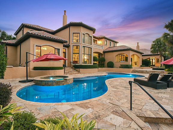 Contact Listing Agent at 954-907-3868 or at llin@llinlu.com with any questions or to schedule a tour. Located in the 24-hour guard gated neighborhood of Lake Butler Sound, this impressive estate is brilliantly designed to deliver the perfect balance between architecture, design and lakefront living. Situated on 1.7 acres & designed with an open concept floor plan, this home features multiple entertaining spaces both inside and out that flow seamlessly together. Beyond the foyer, you are greeted with a stunning two-story living room, a beautiful stylish fireplace & floor to ceiling windows to enjoy the grand view of Lake Butler. The gourmet kitchen features custom cabinetry, top of the line appliances, a large center island with separate prep sink, a hidden pantry & exotic granite countertops throughout. The fully retractable doors lead to expansive outdoor grounds, which capture some of the best resort style living in Florida, with a heated sparkling pool and spa, outdoor summer kitchen, two fireplaces, mature landscaping and an outdoor dining area. The master bedroom suite features a sitting area with picturesque lake views, a coffee bar and three oversized closets. The master bath includes separate sinks, a soaking tub with beautiful stones and a large walk through shower. A custom staircase leads to the second floor, which offers three additional en-suites and loft space. Other features completing this exquisite estate include an office with a wet bar, a man cave and detached guest house with 1 bed/1 bathroom and living space. Access the Butler Chain of Lakes easily from your private boat dock.