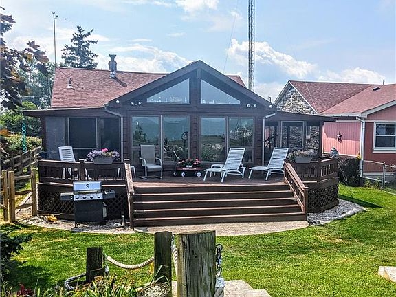ACCEPTING BACK UP OFFERS FOR CLOSING IN NOV. This 3 BR, 2BA Lakefront home has a gorgeous view from the two enclosed porches, multi level deck, yard & glass walled great room. Easy access to the water from your deck. Just a few feet to 30-40 yards of sandy lake bottom. Boat, jetski, paddleboard & swim, all right in your own backyard. Nearby Mienke Marina has a public boat launch for your water toys. Walk over your bridge to the marina or just a short drive. Rt 2 for shopping, dining etc. Ask your agent for feature sheet. All appliances stay. Bsmnt storage, attached garage. Dog run & more.