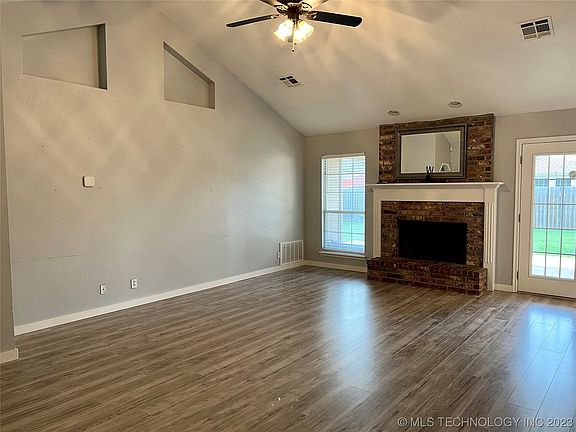 PRICE IMPROVEMENT! Cute as a button and ready for it's next Owners! Great neighborhood in Owasso school district. Spacious eat in kitchen with granite counters, Tons of cabinets, Brand new dishwasher & 3yr old Fridge!! Vaulted ceilings, Brand new wood flooring in living room & hall. Extended back patio with full privacy in back. New Roof in 2019. Vivint home Security System. Fridge, Washer & Dryer stay! Walking distance to Sports Complex. Close to shopping and dining.
