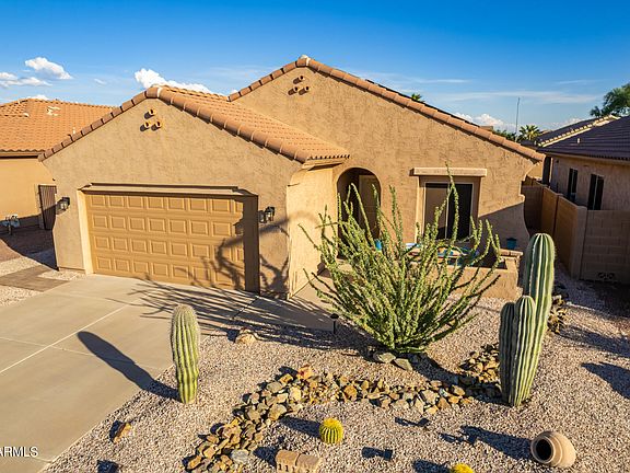 This is the perfect 4-bed, 2-bath home for those wanting to make a move to Mesa! You'll love the refreshing blue pool & the quiet Bella Via neighborhood. A desert landscape, sweet curb appeal, & cozy porch greets you upon arrival. Inside, you'll find an immaculate floor plan with hardwood flooring, soothing palette, & surround sound speakers in the living room. Gorgeous kitchen has SS appliances, dual pantries, a mosaic backsplash, granite counters, oak cabinets w/crown molding, & a breakfast bar. Let's not forget the breakfast room where you can enjoy your delicious meals! The main bedroom includes a walk-in closet & a full bathroom boasting a separate tub/shower & dual sinks. Gather your friends in the backyard featuring covered patio, built-in BBQ, artificial turf, & pool. Stop by!