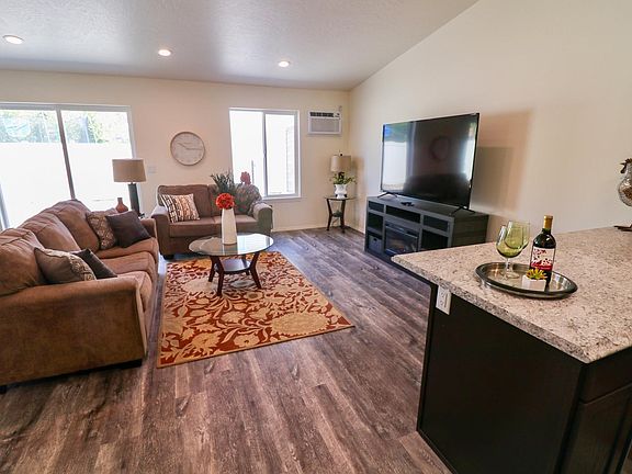 Newer stunning upscale 1252 sq ft duplex. Located in the heart of Spokane Valley, near enough to shopping but nestled into a comfortable neighborhood with plenty of privacy. This home has three bedrooms and two full baths, with full size laundry hookups (W&D not incl.) as well as one level open concept living, no steps! There is durable and beautiful wood laminate flooring throughout, with luxurious carpeting in the bedrooms. The kitchen is a cook s dream with all stainless steel appliances, stainless steel farmhouse kitchen sink, Huntwood cabinetry with soft closing drawers and a pantry with built-in shelves. This thoughtfully laid out kitchen also has high-end appliances including a 27 cu ft refrigerator with water and ice in the door, convection cooking range, microwave, garbage disposal and dishwasher. There is a large eating bar that borders between the kitchen and dining area.... making entertaining a breeze. The living room has a deluxe electric fireplace with 5 flame settings, customizable LED colored lights and a built-in audio system that will link to your smart phone. A large slider door leads off the living room to your beautiful patio and private, professionally landscaped yard. There is also a built-in doggie door that leads to a 8 x 7 ft fenced dog run. Extra attention was also put into this unbelievable double car garage. It is fully finished and insulated, drywalled, textured and painted walls along with an attractive and durable epoxy floor. Outside keypad entry system. Built-in shelves run the full length of the garage and there is a commercial double sheeted and insulated garage door that is ultra quiet and includes two remotes. This pristine and lavish duplex is equipped with energy efficient LED lighting throughout. This home is truly effortless and maintenance free living with all yard care, maintenance of landscaping and weed control provided by the landlord! (Video upon request). I