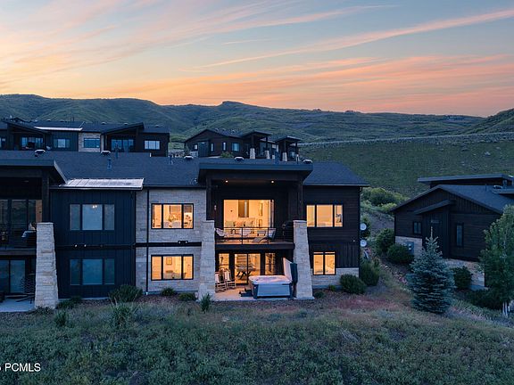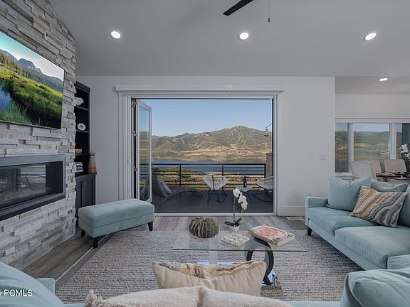 Welcome to your Park City Lakeside Retreat! This 4-bedroom, 4 bathroom impeccably maintained and beautifully upgraded twin home is perfectly poised to capture 180 degree west facing striking panoramic views of the Jordanelle reservoir from the Timpanogos to the slopes of Deer Valley East and beyond. This home had the number one lot pick and ensures that no structures will be built in front to obstruct your stunning views and spectacular sunsets every day of the year. Bathed in natural light, the great room flows seamlessly to the expansive deck via the Nano folding doors. This open concept living space is perfect for entertaining or simply taking in the breathtaking scenery. The chef's kitchen with high end appliances, Sub-Zero fridge, quartz countertops, walk in pantry and generous island is sure to delight the cook. The main floor master enjoys the same stunning vistas and offers a serene escape with the spa-like bathroom. The lower level boasts a full entertainment lounge featuring a game room, theatre room, 3 additional bedrooms, 2 bathrooms, a Finnlao sauna, and extra-large salt hot tub on the patio overlooking the sweeping mountains and water below. Situated in the highly sought after neighborhood of Hideout, Utah with an abundance of trails right outside your door for hiking and biking, just minutes from downtown Park City, world class skiing at the new Deer Valley East Village, and easy access to paddle boarding, kayaking and boating on the Jordanelle just steps away at the 2.5 acre mountainside park. Come see why this home is set apart from the rest with extensive upgrades(quality GCD build), no road noise, no fronted rooftops or power lines and most importantly nature's beauty of unparalleled views. You will never want to leave. This is truly one of a kind!
