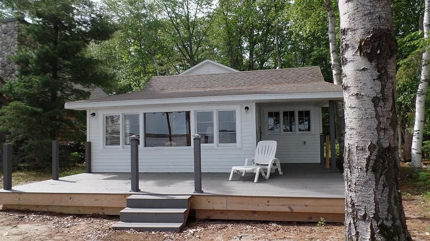 50' Douglas Lake Waterfront with view of sunsets and Pells Island. Great sandy beach for all you summer fun right off your waterfront deck. 3 bedroom, 3 bath cottage features a private guest quarters. 18'x40' detached garage located on a second lot has room to store you toys.