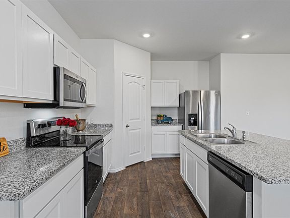 - Features: Kitchen Island, Granite Counters, Dining Area, Open to Family Room, Pantry