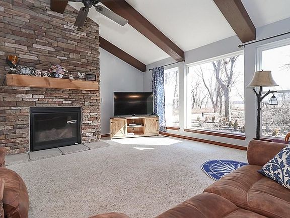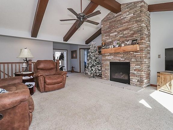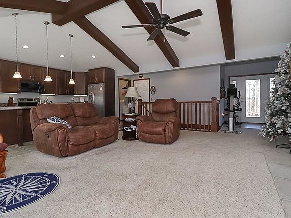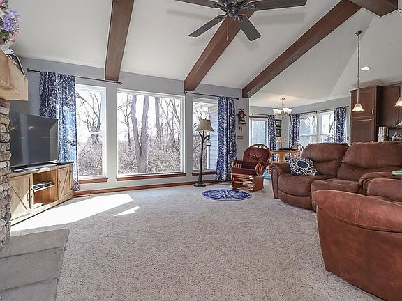 Amazing ranch with beautiful view awaits your visit. Stained glass front door welcomes you as it illuminates the quaint foyer. Amazing eye catching brick fireplace draws all your focus to the vaulted beamed ceilings in the huge open great room accented with recessed lighting through-out. Pedestal lighting hovers over the huge breakfast bar and massive rear windows overlook the beautiful wooded lot. Large master suite offers huge bath with soaking tub, large vanity, and tiled shower. Large rooms, extra storage, huge full basement, wide doorways, and a beautiful private lot are additional features offered with this property.