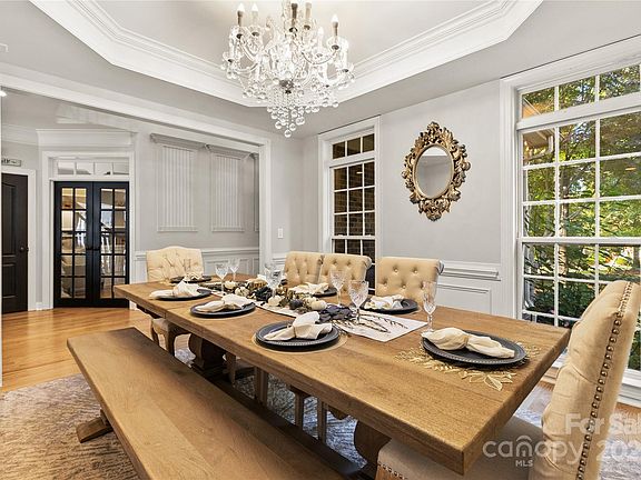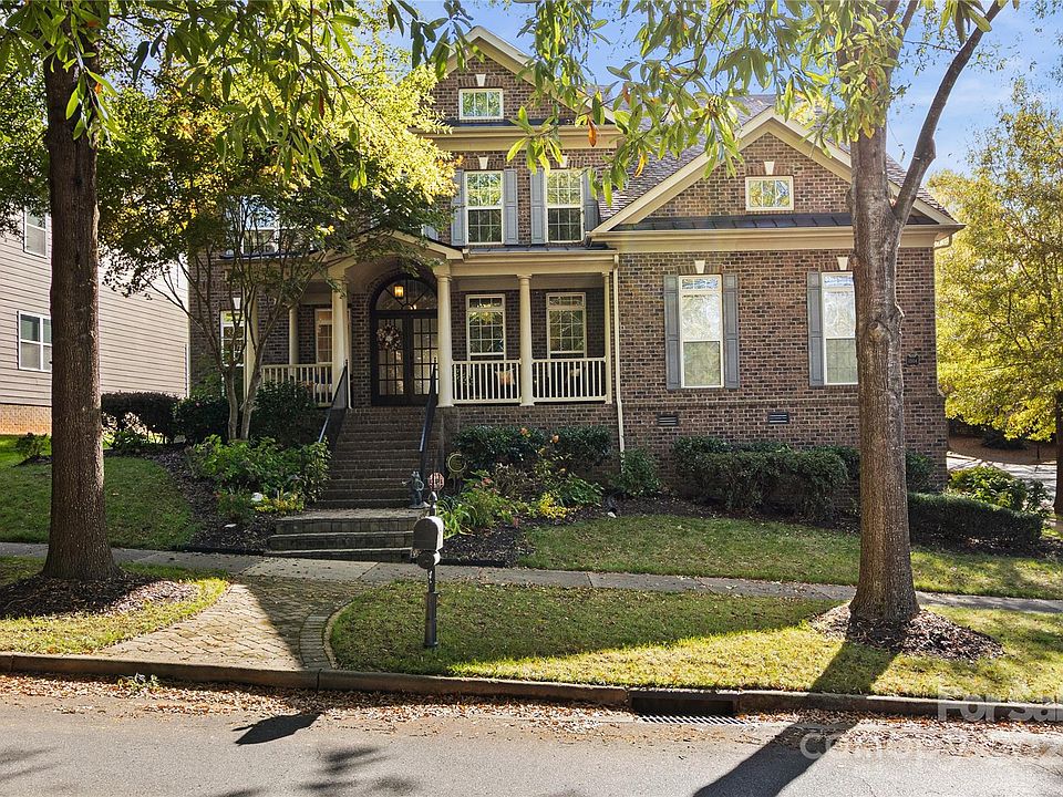 Step through the double-door entry into a grand foyer showcasing soaring ceilings and hardwood floors throughout the main living area. The primary suite on the main level offers convenience and privacy, while the dedicated office with French doors provides an ideal workspace. The gourmet kitchen is a chef’s dream—featuring a sprawling island, gas range, premium finishes, and open flow to the living and dining areas. A see-through fireplace elegantly connects the two-story great room and sunroom, adding warmth and ambiance. The dining room with trey ceiling is perfect for hosting family or formal gatherings.Upstairs, you’ll find 3 spacious secondary bedrooms, a jack-and-jill bathroom, and a huge bonus room with attached full bathroom which makes it ideal for a media space, playroom, or fitness area. Don't miss the massive storage closet too. Enjoy mornings on the cozy front porch overlooking tree-lined streets, or entertain outdoors on the sprawling back deck. You'll love the abundance of parking options, including a 3-car garage and additional driveway. The Vermillion community offers resort-style amenities including an inground pool, clubhouse, playground, dog park, picnic area, community garden, and walking trails. This exceptional home combines timeless craftsmanship with modern comfort—all in one of the area’s most desirable neighborhoods.