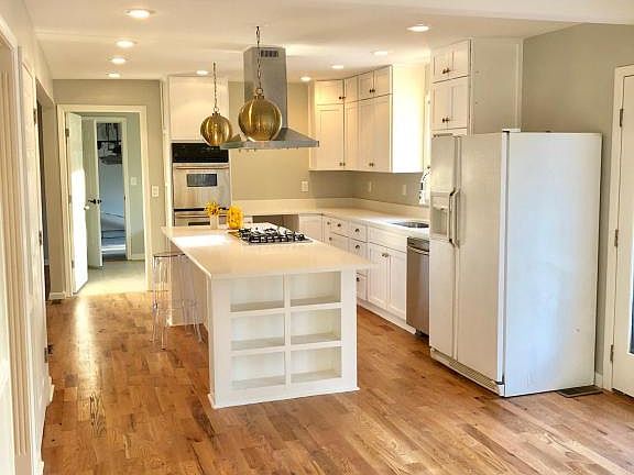 Beautifully Renovated Cape Cod in Harrods Creek Estates has approximately 3400 square feet of Living Space. You'll say ''WOW'' as you enter into the HUGE Great Room with Soaring Vaulted Ceiling, Striking New Lighting, Abundant Natural Light, Newly tiled fireplace and New Hardwood Floors. The New Dream Kitchen has Premium Quartz on the Counter tops and on the New Island with 5-Burner Gas Range with Stainless Hood, Double Stainless ovens, Stainless Dishwasher, New Cabinetry, New Lighting and Signature Faucet. The very spacious Dining Area features a Bay Window with a view to the Humongous Deck. 2 Spacious Bedrooms, Updated Full Bath and Laundry/mud room also on the first floor.