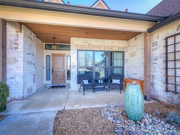Updated 4 bed plus an office with closet and french doors, 3.5 bath; open floor plan in Jenks Schools. Kitchen includes granite counters, stainless steel appliances & newly painted cabinetry. Remodeled master bath with large shower, double sink vanity and sleek/modern style. Infrared heating system in master bath conveys. Custom built bunkbeds and book shelves in upstairs bedroom to remain if desired. Large covered patio with professionally landscaped back yard and features a fire pit, storage shed and dog run. Gorgeous