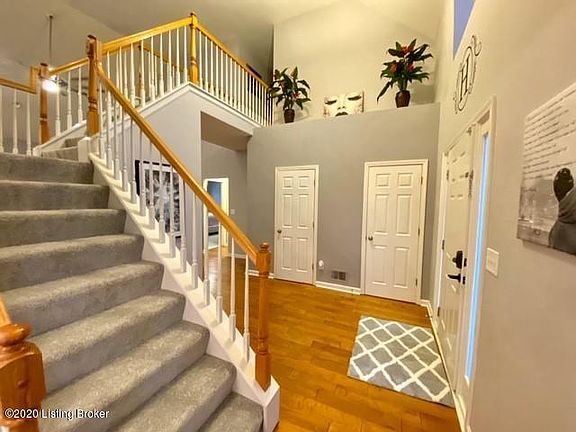 MUST SEE this lovely 1.5 story home, plus finished basement backing up to the large green space in Indian Springs and is in move-in condition! Open floor plan with 2 story foyer and great room, formal dining room with 10' ceilings, and cozy eat-in kitchen featuring Viatera counter-tops and a beautifully tiled back-splash that also matches the fireplace tile. Kitchen has plenty of sunlight, tiled floors, and appliances will remain. New carpet was installed in the master and entire upstairs 9/1/20, with the rest of the house featuring hardwood flooring. The first floor master features neutral colors, trey ceilings, walk-in closet, and en-suite bathroom with double sink vanity, large tub, walk-in shower, and enclosed toilet area. A "Cat Walk" overlooks great room with 2 story vaulted ceilings as you make your way upstairs. This home originally had 3 bedrooms upstairs; 2 bedrooms back-to-back have been converted to one large bedroom via a beautiful archway. It can easily be changed back to separate bedrooms or would be perfect as a toy room, nursery, or a sitting area. Additional features upstairs include a full bath and a spacious bedroom with large walk-in closet. The finished basement features Owens Corning acoustic soundproof walls, kitchenette, bedroom with egress windows, and storage area making it the perfect "mother-in-law" or teenager suite. The entire roof was replaced in June 2019 with the new 3D shingles. Also, a complete irrigation system covering the entire yard was installed in Sept 2019. There is a total of 4 bedrooms (possibility 5), 3.5 baths, and 3,500 sq ft (gross) of space with a beautiful open floor plan. The rear deck overlooks the a large common area with many paved walking trails available to residents in the subdivision. Indian Springs is a beautiful neighborhood community located in Louisville's east end. The community is situated on over 120 acres of private green space with 6 picturesque lakes, beautiful walking paths, picnic benches, fishing, gazebo and much more. This home is conveniently nestled among popular restaurants, grocery stores and expressways. Location, location, location!!