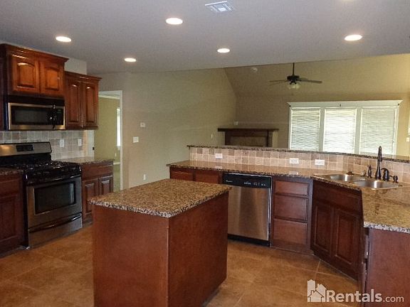 The Falls of Garrett Creek. 2227 Sq. Ft. Built in 2009. 4 bedrooms, game room, plus study. Beautiful kitchen with granite counter tops, stainless appliances, and nice pantry. Open to living area with corner fireplace. 3 bedrooms and 2 full baths down stairs, 1 bedroom, 1 bath and game room upstairs. Covered patio. Fenced yard. Backs to green belt. Call Kim 918-691-8291.