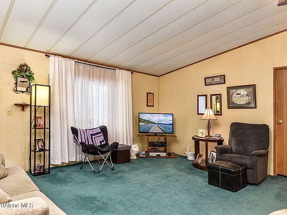 PRICE REDUCED! Why pay rent when you could BUY for LESS?! Located in Mountain View Mobile Park with a tree lined street on a quiet road. The home is a clean, well kept DOUBLE WIDE home with original owner featuring a private master bedroom and bath. Large laundry area with plenty of storage. TWO Sheds to store all your gardening and extras in, as well as a HUGE covered carport. Enjoy a low-maintenance home with a rock garden in front, aluminum siding, storm screen doors, and the privacy of a covered deck. Appliances included are: wall A/C unit, electric range oven, dishwasher, and refrigerator. Newer furnace. Lot rent is $425 and includes garbage, water, sewer, and snow removal. EASY to show and ready to move in!