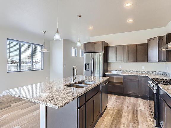 This property will be shown Sunday March 9, 2025 from 12-1.Newer luxurious two story home with 4 bedrooms, 3.5 baths, loft, unfinished basement, 2car garage and fenced yard. Vinyl plank flooring, upgraded carpet and pad. Hickory cabinets & vanities with soft close doors & drawers. Chef's kitchen with granite counter tops, pantry, large island, stainless steel appliances including designer stainless steel hood. Large glass doors to patio & fenced back yard. Located in desirable Firestone, Colorado! Close to I-25 & all amenities
