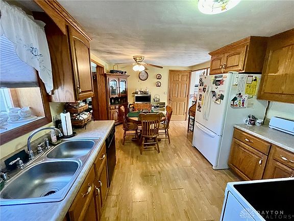 Welcome to this inviting 1,668 sq ft brick ranch set on almost 3 acres of beautiful rolling hills. This spacious home features 3 bedrooms and 1 full bath. The expansive 27’x12’ living room offers a stunning bay window that fills the home with natural light and peaceful views of the front yard. The generous 21’x18’ family room is complete with an electric fireplace. Step into the kitchen, where the oversized pantry provides exceptional storage, or it could easily be converted into a 4th bedroom to suit your needs. All appliances stay with the home for added convenience. Outside, enjoy the versatility of a 32’x24’ barn, perfect for storage, hobbies, or small livestock. The front view is nothing short of breathtaking, offering serene scenery in every season. The property has been well maintained and loved for years and the water heater is only three years old. Property is being sold as-is, as sellers are unable to make repairs.