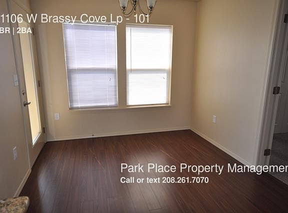 SCHEDULE A SHOWING ONLINE AT: showmojo.com/lh/2ed89140f1 Welcome to Brassy Cove Loop, where your newer 2bed/2bath apartment home awaits! These apartments are in an ideal location, near the freeway, schools, shopping, Edwards Cinema, and NNU. All apartments are over 1000 square feet with a very modern layout and come fully loaded with a refrigerator, dishwasher, oven/range, microwave, and a full size washer/dryer. In addition, there is a three tier window, and area a very functional living room. The kitchen has a marvelous layout, including energy star appliances, granite countertops, beautiful dark wood with plenty of shelving to keep you organized! The master bedroom is in the back of the home, very private bath, has a large closet, and luxurious bathroom. In the middle is the kitchen the opens directly into the oversized living area for access to television, and breakfast bar. The guest bedroom is just as spacious and includes an extra deep closet on the opposite end of the apartment. If this floor plan does not fit you, there is another one to choose from. Both will include tile and hardwood floors with beautiful carpet throughout, and W/D! In addition to these wonderful apartments there is a luxurious clubhouse, with modern furniture, a full sized gym with state of the art equipment, as well as a sparkling pool, and adventurous play port! These 4-plexes are a MUST SEE...they will go quickly Call 208-505-0195 for more information or visit www.parkplaceid.com to apply. Tenants will be charged $10 per month, in addition to rent, for furnace filter delivery service. **This information is deemed reliable but not guaranteed. Information is subject to change.** **The available date for property is an estimate only, Park Place cannot guarantee the date available for move in until the home has been vacated and prepared for a new renter. ** Security Deposit: 600 Parking: 1 Designated Lease Length: 9 or 12 Subdivision: Brassy Cove Nearest Cross Street: Flamingo/Middleton Square Footage: 1000 Floorplans: A Virtual Tour: Date Property Available for Viewing: 2017/4/13 House Number: 11106 Bathroom: 2 Bedrooms: 2 Pets: Size Limited 50lbs (additional deposit may be required) Utilities Included: WST Price Specials: none Balcony Deck Or Patio Breakfast Nook Disposal Dryer Filter Easy Program Granite Countertop Hardwood Floor Laundry Area Inside Nampa Storage Space Washer