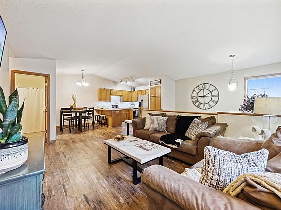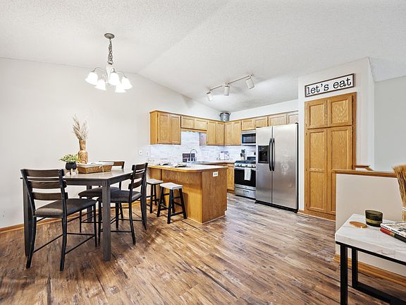 One of a kind, affordable, end unit 4-bedroom townhome in Elk River with a serene wooded backyard. Updated with new carpet and LVP flooring throughout, freshly painted bedrooms, newer roof, dishwasher, backsplash, and water heater. The vaulted ceilings and open concept floor plan seamlessly connects the living, dining, and kitchen areas, ideal for entertaining. Conveniently located just minutes from shopping, restaurants, schools, and Highway 169.