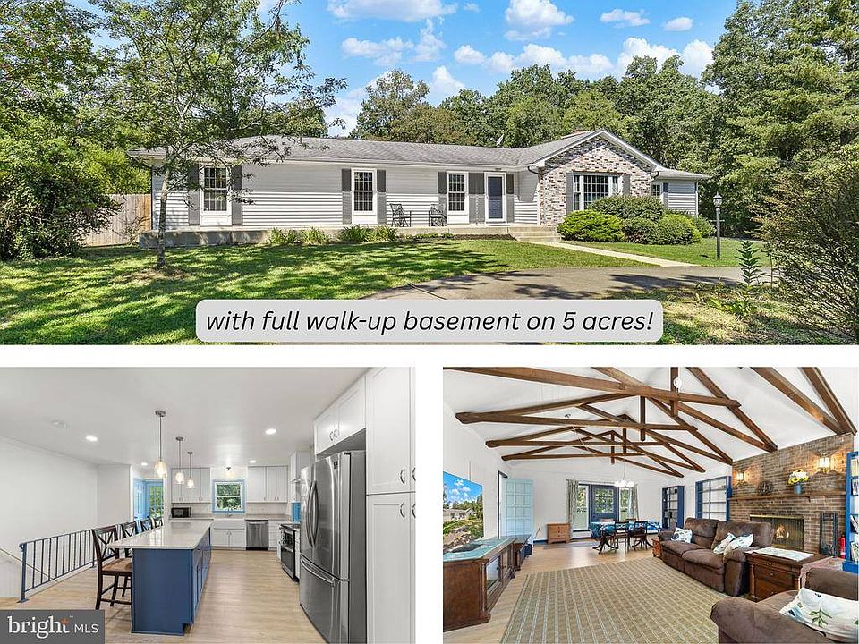 ** Significant price reduction as this listing no longer includes the extra building lot. ** Discover this spacious ranch-style home in Prince William’s sought-after Rural Crescent, offering 3 bedrooms, 2 bathrooms, full basement and a 2-car garage on 5 level acres - No HOA and no covenants! ** Inside, luxury vinyl plank flooring runs throughout. The renovated kitchen features a farmhouse sink, white cabinetry, a striking blue island, quartz countertops, stainless steel appliances, and a walk-in pantry. The great room boasts a vaulted ceiling with exposed rafters, a wood-burning fireplace, and custom built-in bookshelves. ** The newly expanded primary suite includes an ensuite bath with a large shower, dual vanities, and two walk-in closets. The unfinished walk-up basement already has most framing and wiring in place, making it easier to finish and add living space. With a 4-bedroom septic, future owners could create a legal 4th bedroom in the basement with proper egress. ** Outdoors, the front acreage has been left in its natural state, the rear yard is fenced, and the back half of the property is wooded. ** Conveniently located just 15 minutes from the VRE station and 20 minutes from I-66, with shopping, dining, entertainment, and healthcare close by. ** Major improvements made since 2021 (details/dates provided upon request): chimney lined/capped, new windows, new hvac, new fence, new washer/dryer, new hot water heater, all new plumbing and whole house filter, new electric panel, new septic tank and d-box, new attic exhaust fan, renovated kitchen and bathrooms, and new flooring.